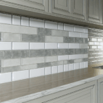 • Керамическая плитка. Классический выбор для стен и фартуков. Глазурованная поверхность хорошо передаёт сложные принты — от орнаментов до имитаций камня и дерева. Подходит для ванных и кухонных зон, где важна простота ухода.