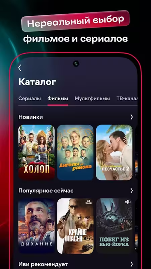 Иви предлагает пользователям доступ к тысячам фильмов, сериалов, документальных лент и мультфильмов. Это позволяет находить контент для любого возраста и интереса. От самых новых релизов до культовых картин — здесь есть всё.